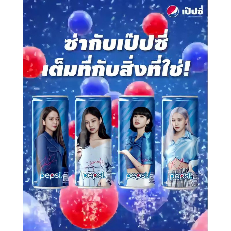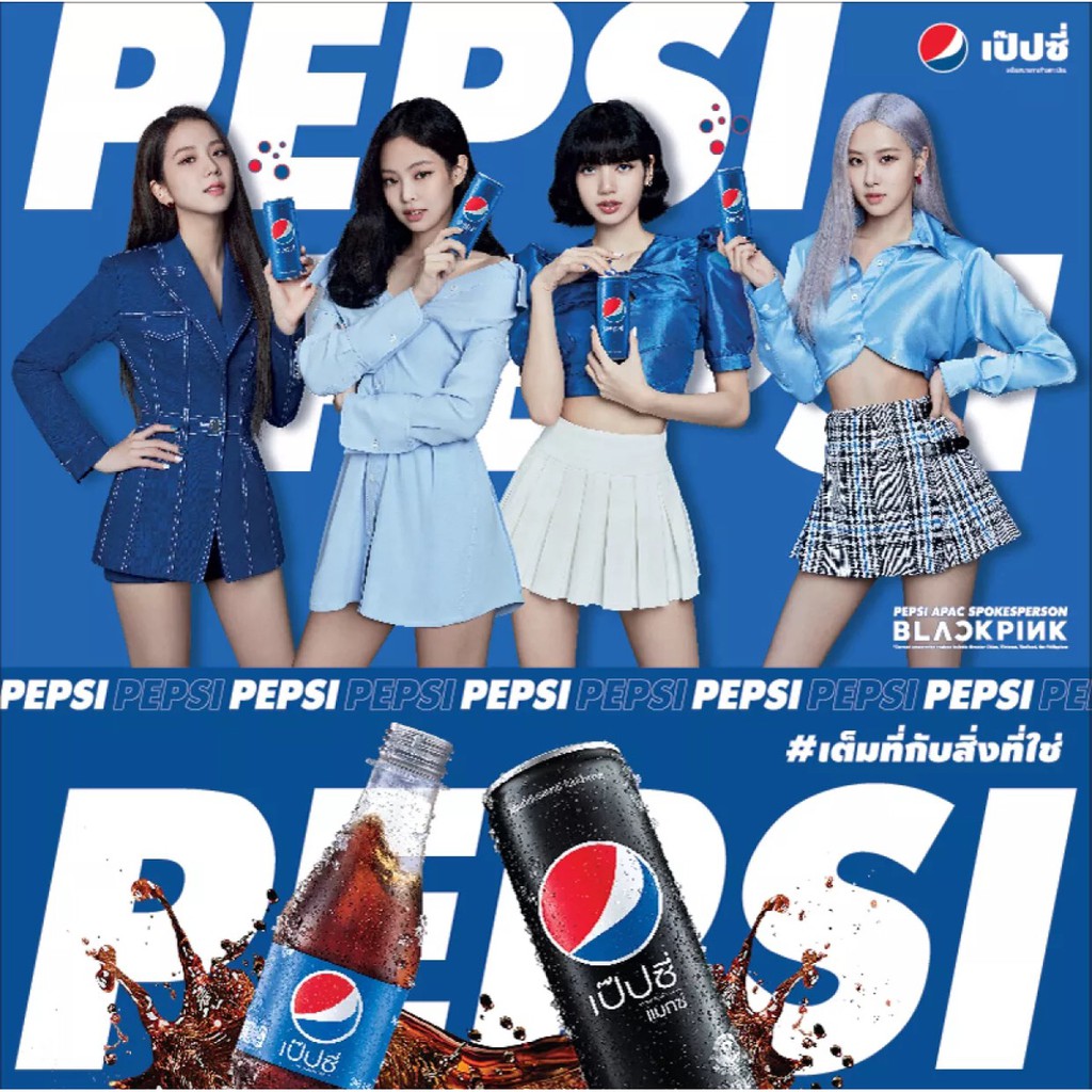 Pepsi ลายใหม่(สีฟ้า) blackpink limited 325ml เป๊ปซี่. ทางเป๊ปซี่เห็นว่า กลุ่มวัยรุ่นในประเทศไทยให้ความสนใจกับดนตรีเป็นอันดับต้นๆ จึงได้ใช้ศิลปินเบอร์ดังอย่าง blackpink เพื่อดึง.